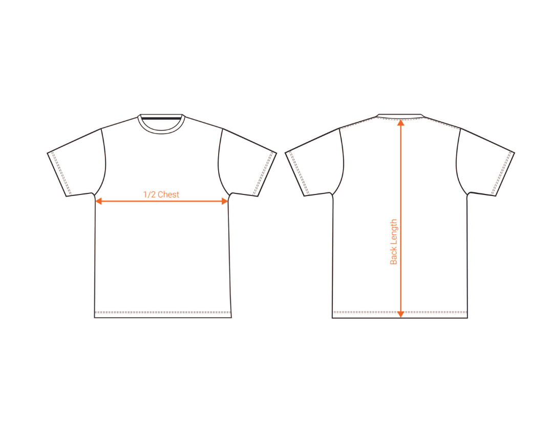 | SIZE | ½ CHEST (IN) | BACK LENGTH (IN) |