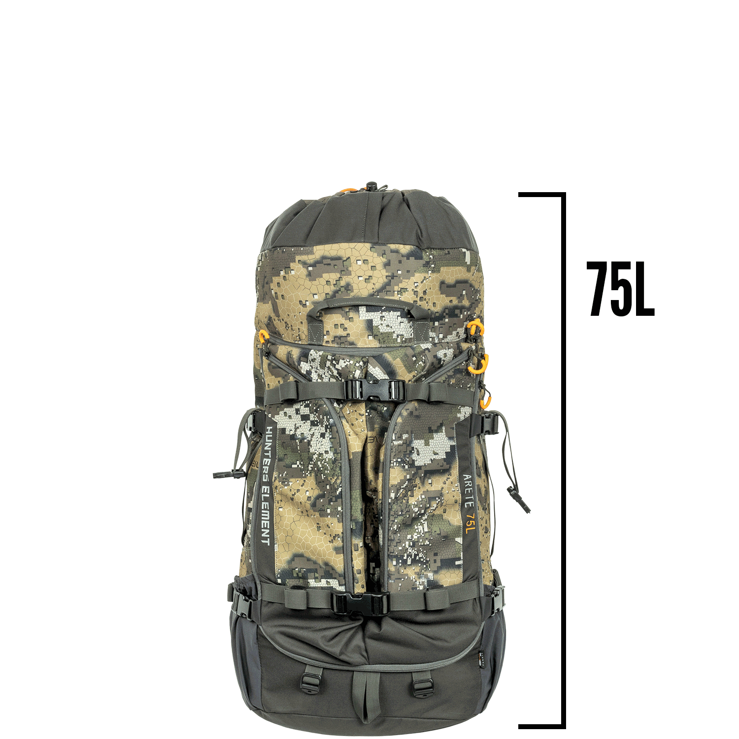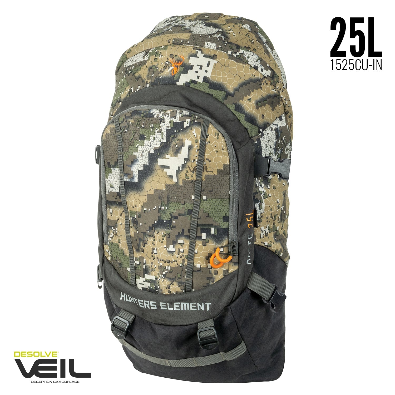 The 25L is designed for standard day hunting excursions when packing requirements are light to medium. Enough room to fit lunch, water, a jacket, ammo, etc. This is the perfect size for packing into camp, inside your big 75L bag, then switching it over for your daily hunting missions.