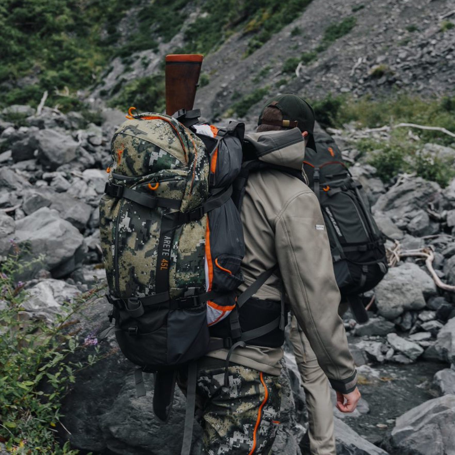 The 45L Arete pack and 75L Arete pack have built quick-access compartments for spotting scopes, cameras and tripods. These can be carried setup and ready to go, saving the hassle of having to undo pockets and screw things together when your in the glassing zone or stalking in.