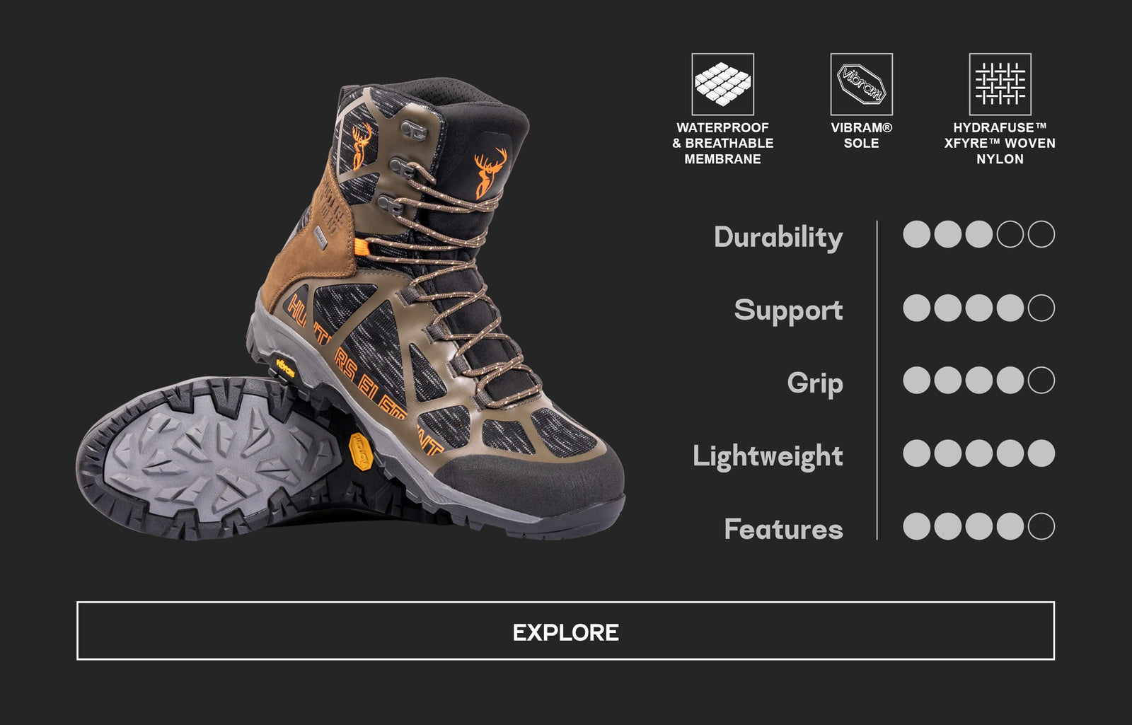 The Element Boot is the ultimate all-terrain boot, suitable for any hunter on any hunt. It’s heavy-duty, so if you tackle very demanding country and lug heavy loads, this is the boot for you.