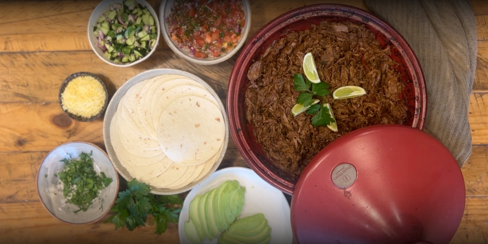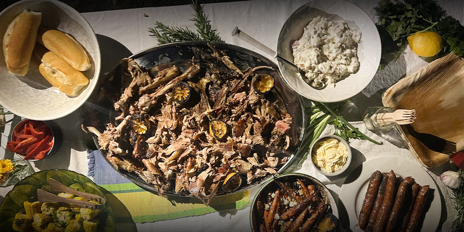 Slow cooked pulled goat barbacoa is perfect for sharing.