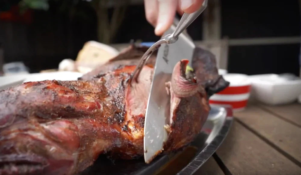 In this episode, Kevin from Smokin' Gauchos shows us how to roast a pork leg and goat rack!