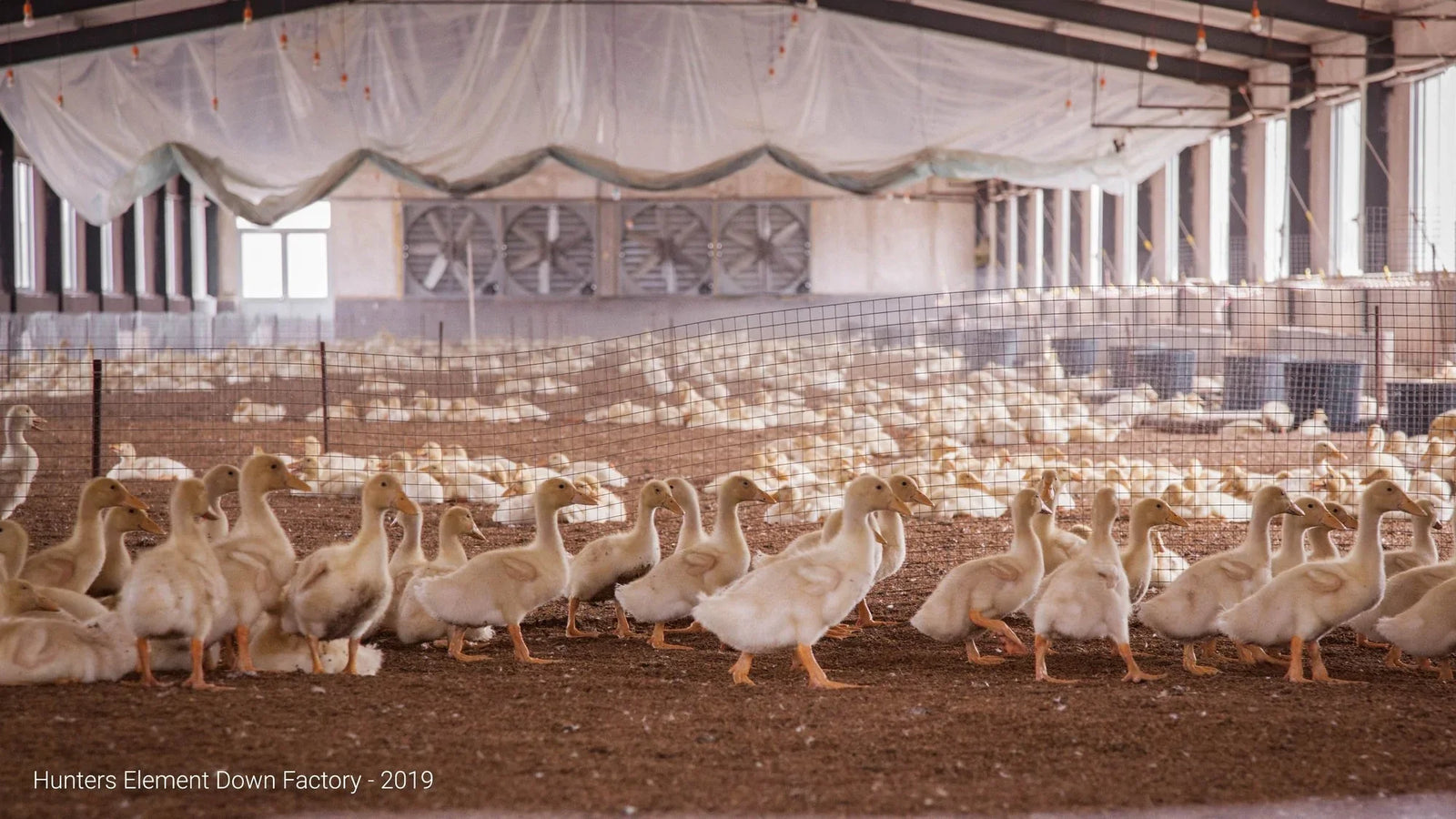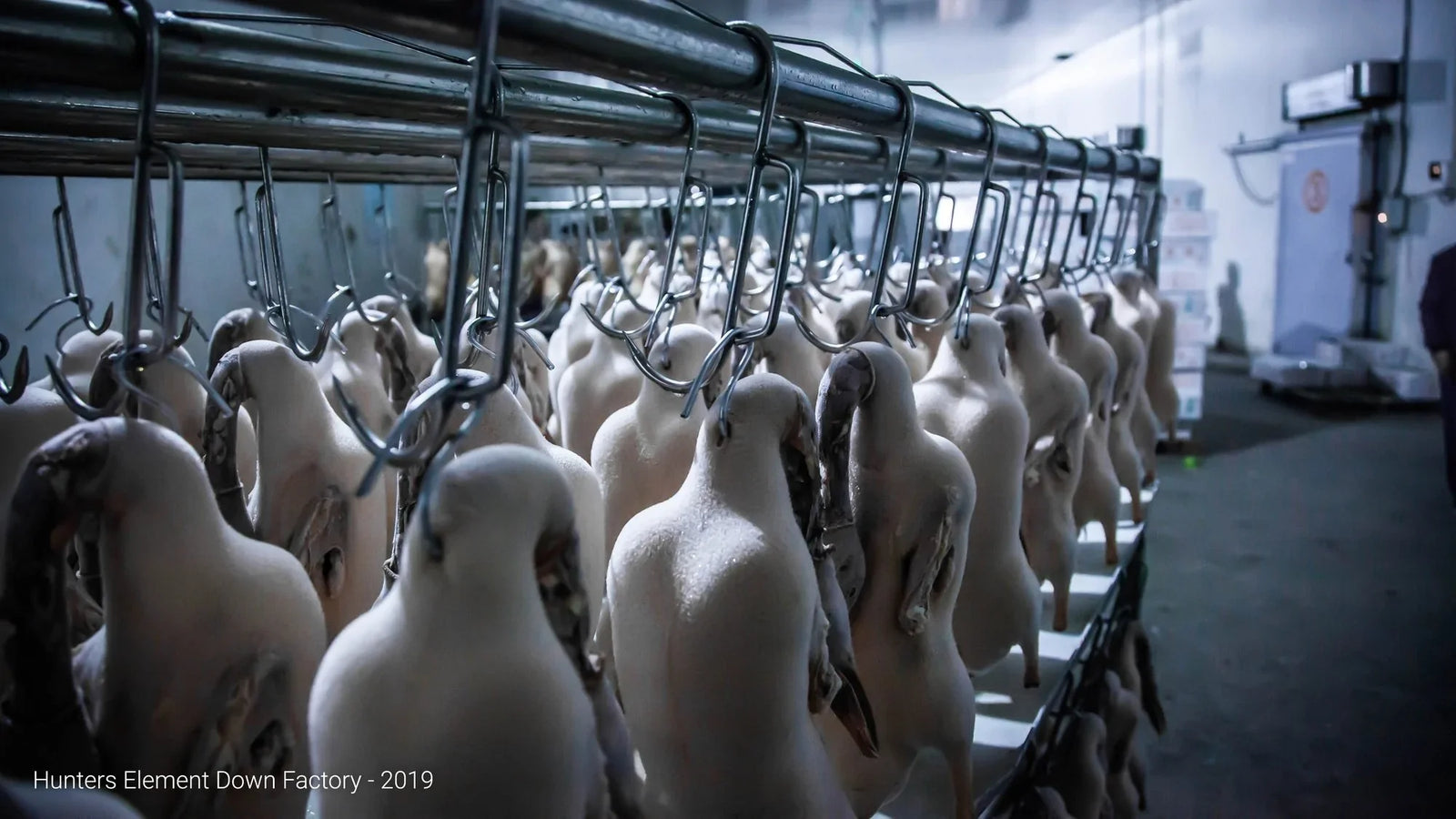 Inspecting the entire process of our bird's lives, through to how they are killed, and plucked was comforting knowing that there was absolutely no mistreatment, force-feeding, live plucking, and the birds were killed humanely. This allowed us to check all the boxes required to go away from synthetic down and back to feather down for our 2019 Razor Elite Jacket and Vest.